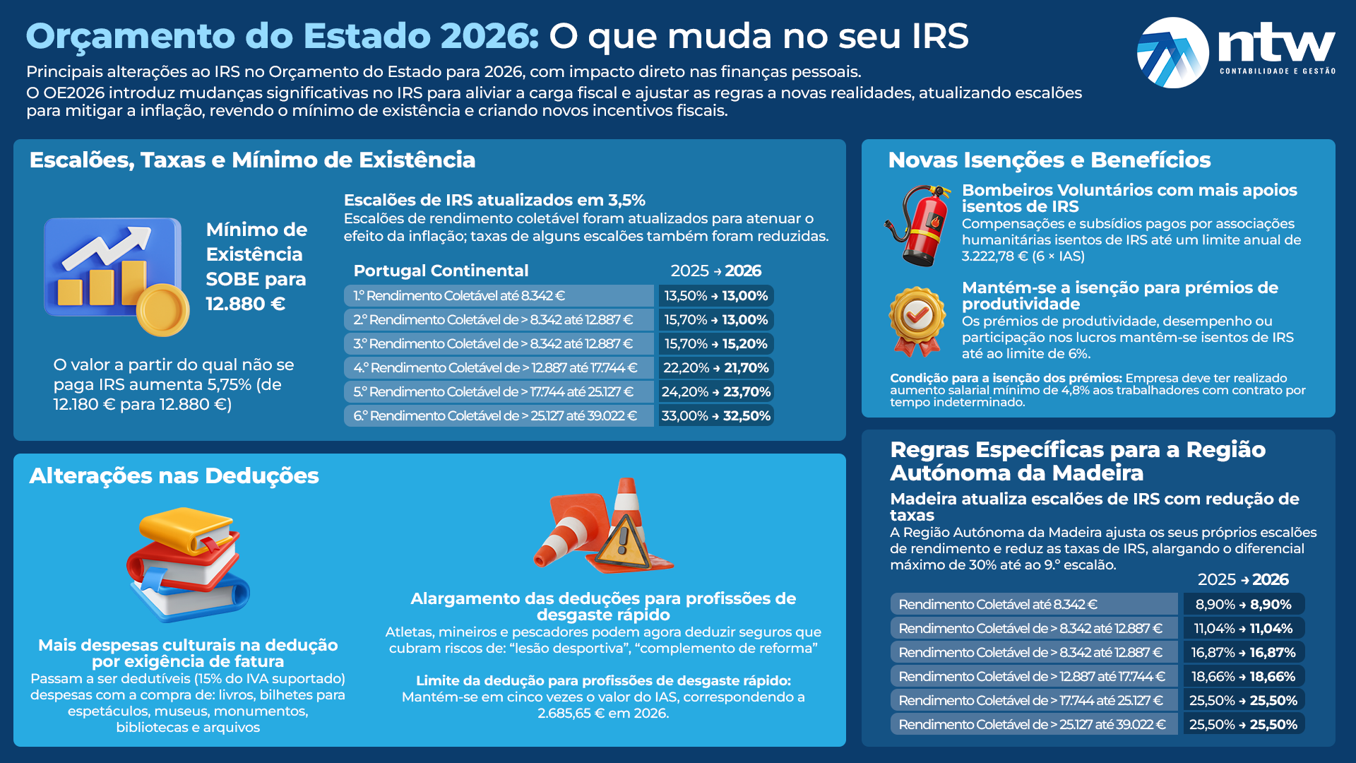 As alterações ao IRS (Imposto sobre o Rendimento das Pessoas Singulares) introduzidas pelo Orçamento do Estado para 2026 focam-se na atualização de escalões, novos incentivos à produtividade e alargamento de deduções em áreas culturais.